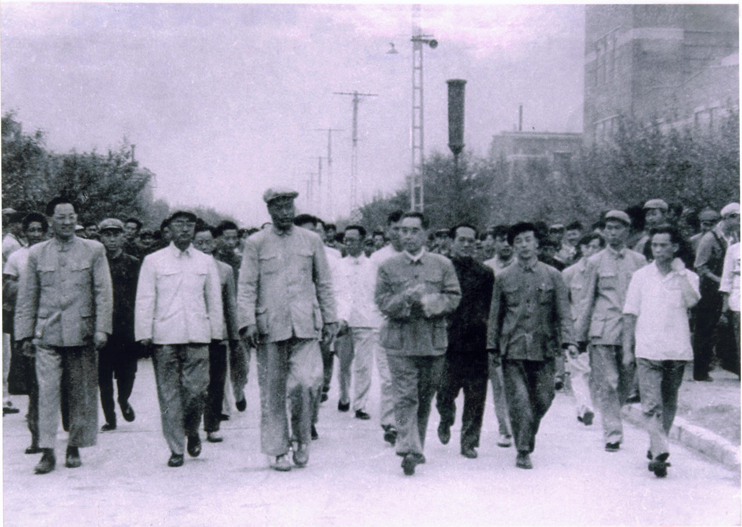 (1962年6月20日,赵东宛校友(前排右二)陪同周恩来总理视察富拉尔基第一重机厂,为时任富拉尔基第一重机厂副厂长兼总工程师)