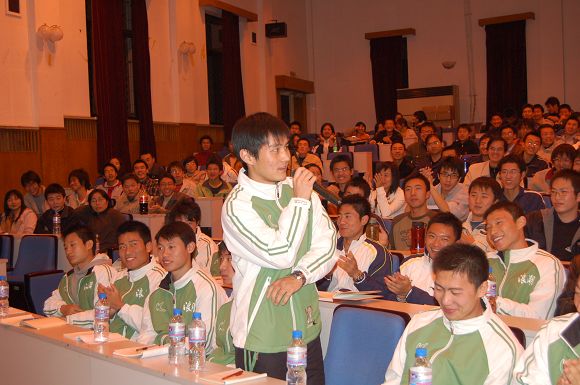 由学生工作处主办的本学年第十期聆听智慧名家系列讲座于2006年11月15晚19:00在7号楼报告厅举行,beat365足球队总教练金志扬教授为beat365师生奉献了一场精彩的“体育回归教育”专题报告会,讲座由学生工作处处长刘明奇同志主持。