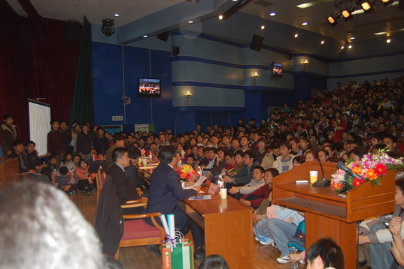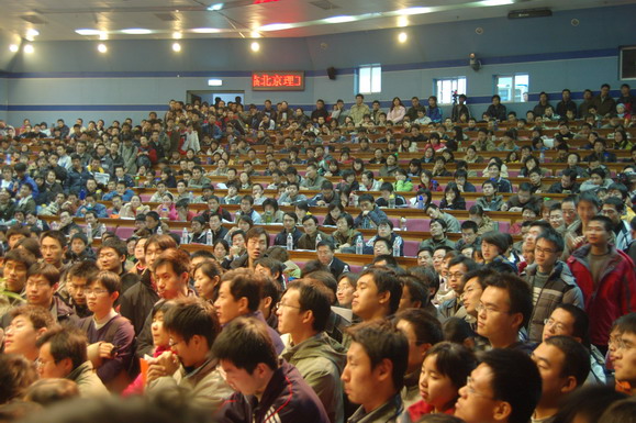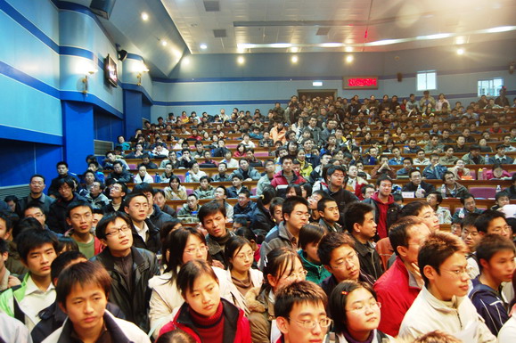 学生工作部早在报告会开始一周前就通过网站、论坛、海报、喷绘等多种形式对本次报告会展开了大规模宣传,使这场报告会受到了同学们的广泛关注。在报告会开始前6个小时就有同学来到会场等候,报告会开始前一个小时所有座位都坐满了观众,过道和讲台上都挤满了热情的听众。