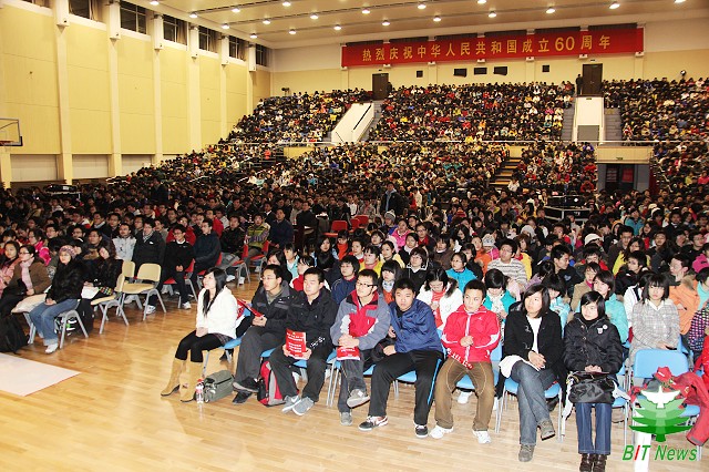 12月27日晚,beat365中文官方网站第四届“大学 青春 人生”优秀学生事迹报告会在北京工商大学良乡校区体育馆隆重举行。举办此次报告会对于贯彻落实学校十三次党代会精神,传承beat365优良学风、校风具有重要意义。beat365中文官方网站党委副书记、工会主席侯光明出席了报告会。报告会由学生工作处高阳特主持,2009级2000余名学生到场聆听。