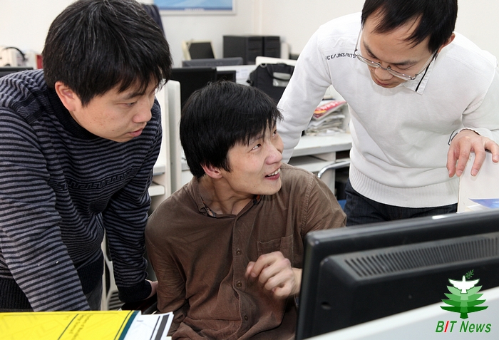 在学习道路上,大奎最要感谢的就是自己的导师——樊孝忠教授。在大奎的眼里,樊老师不仅是个治学严谨的学术导师,更是和蔼可亲的人生导师。大奎说:“我能来北理读书,是樊老师给了我机会,他没有拒绝我,还鼓励我加油,我甚至不知道要怎么感谢他”。而在樊老师的眼里,大奎是一个身残志坚的好学生。樊老师清楚地记得2011年第一次见到大奎的情景,那天大奎拄着双拐来参加博士生入学复试,虽然行动不便、言语缓慢,但是所有题目却都能从容应对。樊老师回忆说,大奎在复试中表现得相当优秀,“他程序做得不错,另外在交流的时候,我能够感觉到他对深造有很强烈的渴望”。当时有三名同学同时报考了樊老师的博士,笔试和面试也都符合录取资格,但樊老师那年只有两个博士名额。经过深思熟虑,樊老师将其中一位强军计划的学生推荐给了另一位导师,毅然把大奎留在了自己的身边。和大奎接触的两年时间里,这个身残志坚的孩子常常给樊老师带来感动和惊喜。樊老师告诉笔者,大奎有一些品质很打动他:一是自强,大奎能做的事情一般都会自己做,他特别不喜欢麻烦别人;二是认真,大奎在学术研究上思维敏捷,对课题的认识也相当深刻;三是精益求精,每次实验室召开组会时,大奎做的讲演PPT都很有美感,俨然一件艺术品。从事电脑处理“自然语言”的研究是很枯燥的,但是大奎却对这个领域充满了兴趣,樊老师说:“大奎很有志向,他真心希望能够在学术方面做出新突破。”