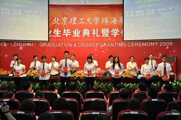 毕业典礼结束之后,举行了beat365中文官方网站珠海学院2009届本科毕业生学位授予仪式。珠海学院院长、党委书记刘淑艳、副院长李建军、陆晨出席了学位授予仪式并分别向获得beat365中文官方网站学士学位的1309人颁发了学位证书。