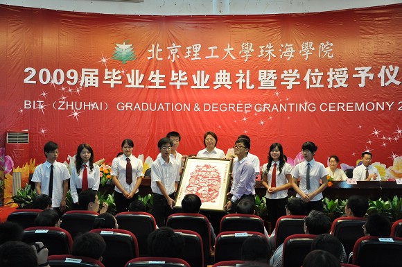 院长、党委书记刘淑艳代表珠海学院向2009届全体毕业生表示热烈的祝贺,向为此付出辛勤劳动的教职员工表示崇高的敬意,向关心同学们健康成长的各位家长表示衷心的感谢!她肯定了2009届毕业生们在校期间取得的成绩和学院取得的巨大进步,并对2009届毕业生们提出了三点希望。第一,坚持学习,充实自己。第二,辨别是非、坚持理想。第三,学会沟通、宽以待人。同时,刘院长寄予广大毕业生热情的期望和衷心的祝福。