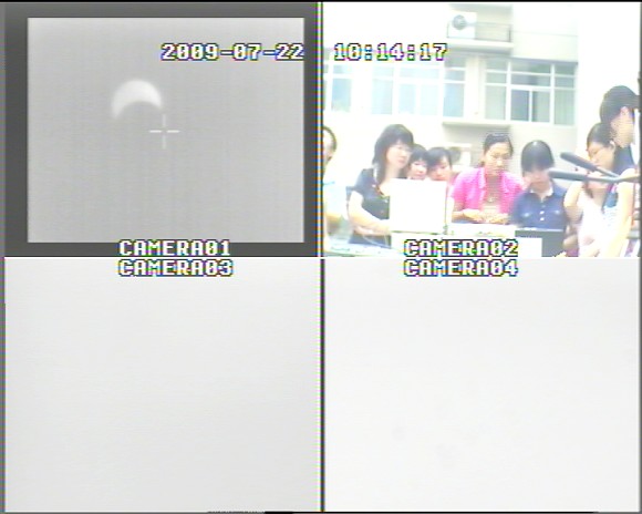 一大早小组成员便开始装配、调试仪器,八时许一切准备就绪,等待观测,同时小型观测站的建立也引来众多看客。初始由于阴云遮挡,无法确定太阳位置,八点半左右,云层变薄,人们可以用肉眼观看到太阳,小组成员迅速定位镜筒,用远红外,可见光,紫外光三个波段同时进行观测并录像。大约十分钟后,云层再次遮挡,偏食已无法用肉眼观看,仪器的可见光波段也无影像,但此时仪器的远红外波段可观看到清晰的日偏食图像。阴云的遮挡影响了日食观察,但通过先进科学仪器随时了解偏食的变化过程,不禁使人们感到惊叹。随后的时间,通过不断地跟踪定位,小组成员利用太阳的远红外波段热成像记录了日食全过程。