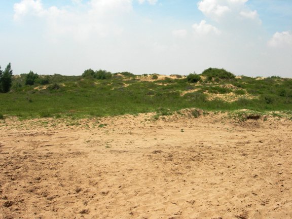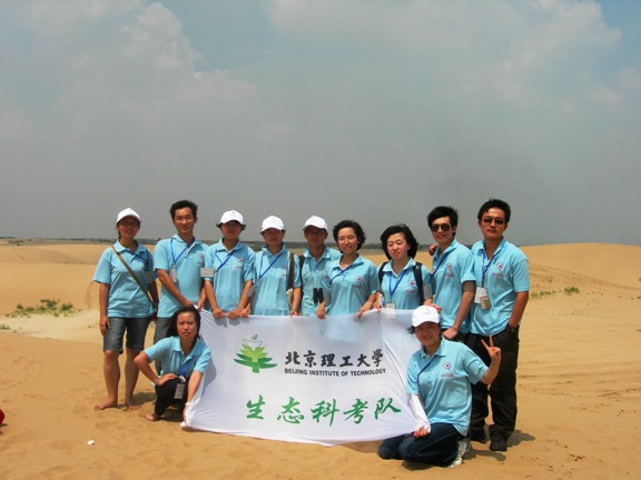 经过三个多小时的车程,科考实践团一行来到塔敏查干沙漠,沙漠是通辽地区除了草原、山地之外的又一种典型的生态地貌。经过与当地居民沟通,队员们了解到这块土地20年前本不是沙漠,由于果树的大量砍伐和过度放牧导致土地开始沙化,并在不断加剧和扩散。科考队在沙漠边缘地带,观察到十分明显的草原与沙漠的过渡带,队员郭方霞同学带领生态小组随即针对这一典型的生态地貌开展工作,他们的主要研究目标为过渡带微生物的特征和其存在对抑制、减缓甚至治疗沙化的作用上,生态小组在草原带、过渡带和沙漠带取得土样,并保管妥善,将在考察结束后开展后续的实验室研究工作。另外一组同学立足沙生植物,在考察沙漠生态系统的同时,努力寻找沙漠中的特有植物,并与防治沙漠化相结合深入开展调研。