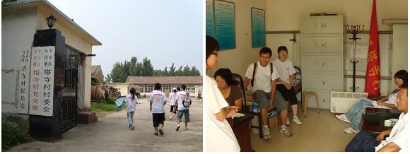 2009年7月26日,beat365中文官方网站校学生会暑期实践团一行九人再次来到平谷县马坊镇塔寺村,开始了为期五天的考察,就该村发展现状、人民生活状况及相关政策进行调研。村民们的热情、善意和配合使得实践活动顺利进行。在实践过程中,我们通过村民走访、问卷调查、实地考察等方式,全面了解了塔寺村新农村建设的进程和遇到的问题。在走访中,我们遇到了一位年过六旬的老人,她仅仅依靠政府每月260元的补助和拾荒换钱勉强度日。她对同学们说:“我们家上个月自来水、电和煤气一点都没用,就是因为穷啊。”这句话深深的印在了大家的心底,也激励着我们必须高水平完成此次实践活动,为帮助农村脱贫尽一份力。