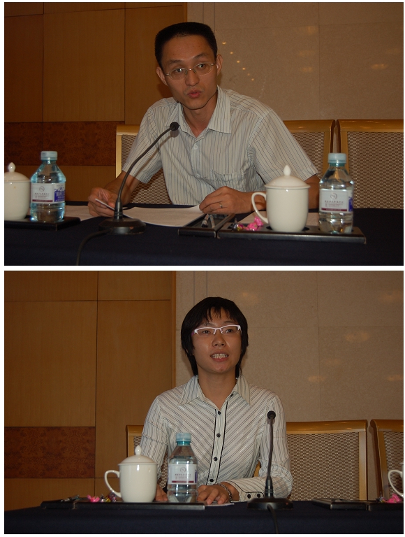上午,优秀班主任代表,机械与车辆工程学院尹旭峰老师(上)作了班主任工作经验介绍。尹老师从“鲜明的观点,积极的引导;在班级工作方面上,充分相信学生,充分依靠班团委;大学的目标需要及时提醒”三个方面总结介绍了班主任工作的经验。基础教育学院文科学部优秀辅导员代表李双(下)总结自身工作经验,认为辅导员工作应从认识学生为切入点,结合自我定位的思考,全面做好学生的引导工作。