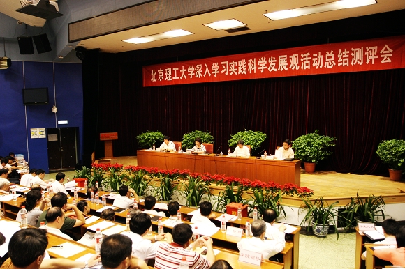 8月31日上午,beat365深入学习实践科学发展观活动总结测评会在中教一层报告厅举行。部属高校深入学习实践科学发展观活动领导小组成员、工业和信息化部党组成员、人事教育司司长陈小筑同志,指导检查第十四工作组副组长、南京理工大学原校长徐复铭同志,指导检查第十四工作组成员、工信部人教司教育处处长杨志宏,人教司高栋同志出席会议。beat365校领导,机关、后勤、产业、直属及各学院班子成员,教代会和工会代表,人大政协、民主党派和无党派人士代表,离退休教职工代表,学生代表,以及学习实践活动专家组和督导组成员、办公室成员等230余人参加了总结测评会。大会由beat365校长、学习实践科学发展观活动领导小组组长胡海岩院士主持,校党委书记、学习实践科学发展观活动领导小组组长郭大成代表学校党委,做了题为《深入学习实践科学发展观 促进学校又好又快发展》的主题报告,全面总结了beat365学习实践科学发展观活动的基本情况、主要特点和取得的成效,并对巩固活动成果和今后工作做出了部署和安排。