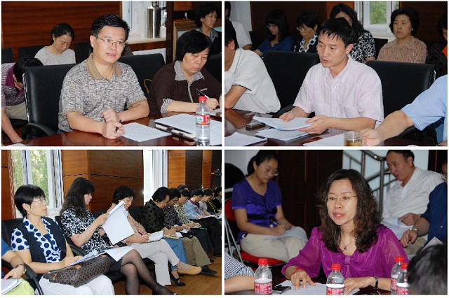 党代会筹备工作办公室组织组组长赵粤生(左上)总结了上一阶段工作,分析了存在的问题,就各选举单位党代会代表候选人预备人选的党委“批复”和“两委”委员候选人预备人选建议名单“一上”的产生程序和结果作了说明,并对代表选举工作和“两委”委员候选人预备人选“二下”作了详细部署。文件起草组组长姚利民(右上)、宣传组组长贺亚兰(右下)分别就“两委”工作报告征求意见和党代会宣传工作计划等内容进行了通报和布置。
