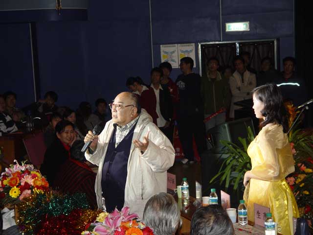 校领导与各部处领导为获奖队代表颁奖,校党委副书记、副校长杨宾教授在颁奖结束后发表讲话,他说今年的“一二·九”合唱比赛,比往年更加有创意,学生的精神面貌也非常好,演唱水平也有了很大的提高,并祝贺演出圆满成功!