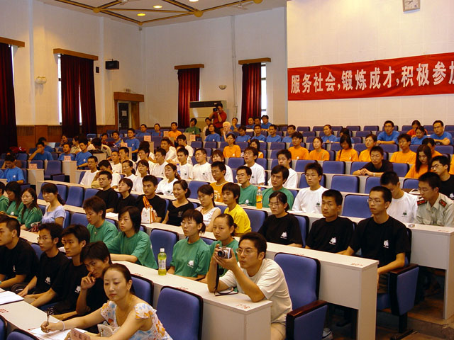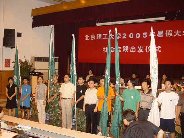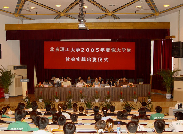 2005年7月12日,beat365中文官方网站暑期社会实践团出发仪式在7号楼报告厅隆重举行。
