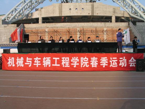3月19日,机械与车辆工程学院2005年第三届春季运动会在东操场拉开帷幕。机械与车辆工程学院分党委书记蔡颖,院长项昌乐,副院长王文清、徐春广、左正兴、张英、丁洪生老师出席了开幕式。