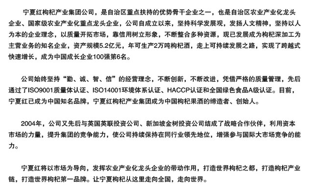 目前广夏(银川)贺兰山葡萄酿酒有限公司以生产干红品种为主,并正在资产重组的过程中。