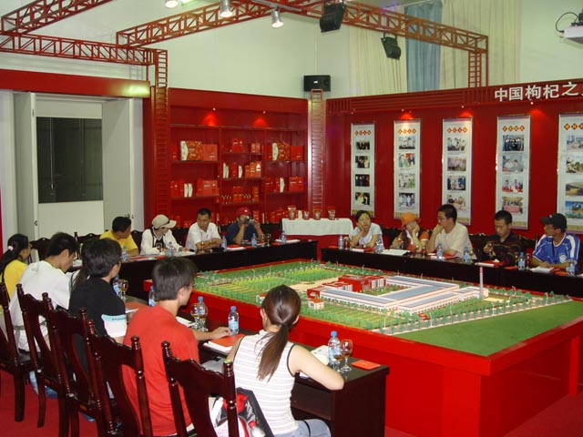 科考队员在与宁夏红枸杞产业集团(http://www.ningxiahong.com/)的高级管理人员进行座谈。