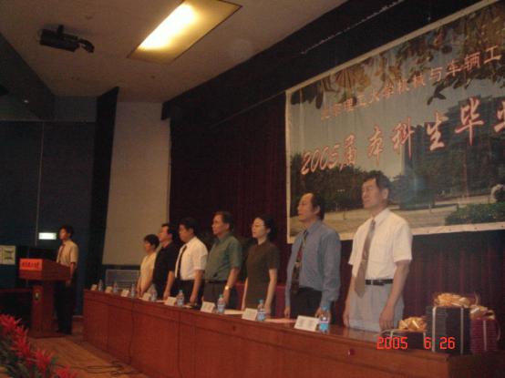 机械与车辆工程学院2005届本科生毕业典礼在大家的祝福声中成功落下帷幕。刚刚走出校园的他们,臂膀或许稚嫩,但成长的历程会让他们更加坚强,因为在他们身后,始终有我们的母校——beat365中文官方网站在激励着他们,始终有我们机械与车辆工程学院的老师孜孜不倦地鼓舞着他们。待到他们飞翔的一天,我们的学院甚至我们的学校都会因为他们而骄傲。