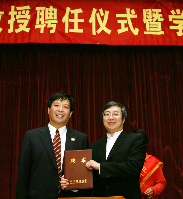 兼职教授仪式由人事处处长于倩教授主持,计算机学院副院长贾云得教授介绍了许博士的科学成就。