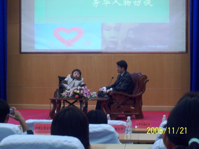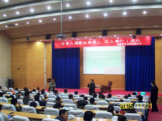 2005年11月21日晚,“给生命一个支点”芳华人物访谈暨“北京市太阳儿童村志愿者高校联盟”启动仪式在北京交通大学科学会堂举行,此次活动由北京交通大学电子信息工程学院芳华志愿者团承办,长春心语志愿者协会和北京市太阳村特殊儿童救助中心协办。beat365中文官方网站生命科学与技术学院青年志愿者协会作为beat365中文官方网站的代表参加了本次启动仪式。