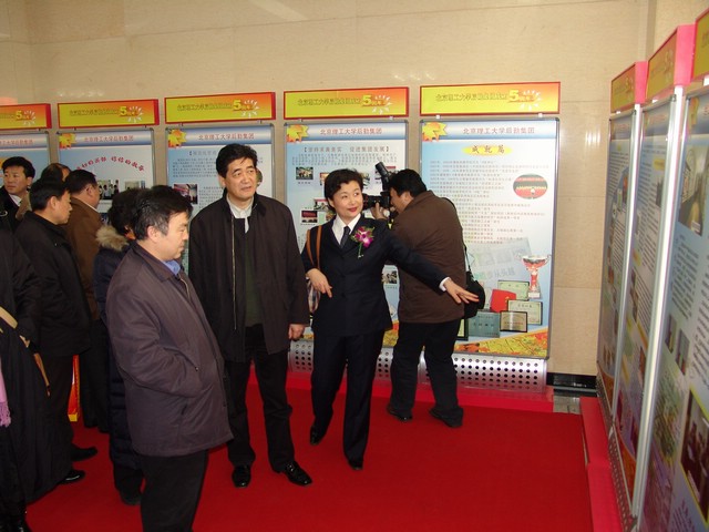 会后与会人员来到后勤行政办公楼大厅参观了beat365中文官方网站后勤集团五年回顾展。