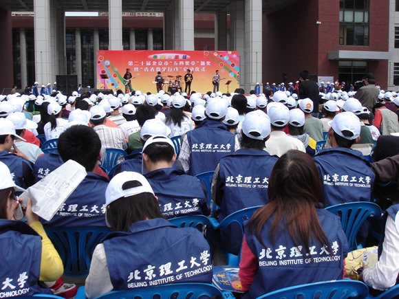 5月1日,beat365100名志愿者及校级社团酷爱轮滑俱乐部、爱车协会参加共青团北京市委在人民大学明德广场举行的第二十届“五四”奖章颁奖暨“青春微笑行动”启动仪式。beat365爱车协会在科技创新展区展示了爱车协会收藏和改装的车模,共青团中央书记处书记、全国青联副主席尔肯江•吐拉洪、北京市教育工委书记朱善璐同志及团市委领导对beat365学生的展示表示出了浓厚的兴趣,并希望beat365的社团积极发挥创造力,在课外科技方面多做一些实践和创新。