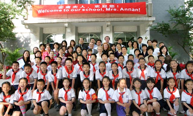 最后,安南夫人一行与附小的学生、老师,北京市、海淀区妇联领导以及beat365陪同访问的部门领导等合照留念。