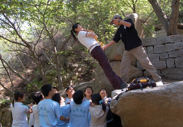 继宿舍向心力大赛之后,由学生工作处心理咨询中心主办,机电学院和心理健康协会承办的beat365中文官方网站2006年“5 25”心理健康节的又一特别体验活动——野外拓展训练,于5月28日在昌平双龙山拓展训练基地进行。