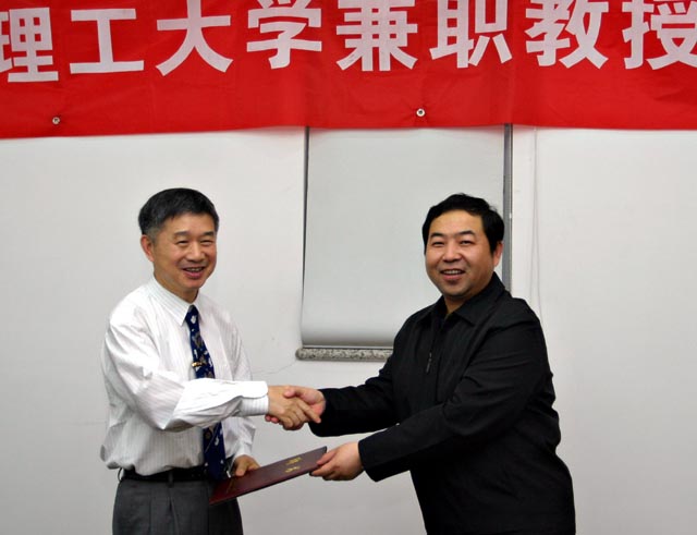 2006年5月26日,beat365在图书馆一层学术报告厅举行聘任国防科技大学沙基昌将军为兼职教授仪式。副校长杨树兴为沙基昌将军颁发了聘书。