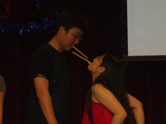 歌会在02级本科生李岚同学所演唱的《舞娘》中拉开了帷幕,她那激情四射的舞姿让人眼花缭乱,在场的气氛从一开始就到达了高潮。接下来的节目也是精彩不断,无论是独唱、自弹自唱、男女对唱、还是群体合唱都引起在场观众一阵阵热烈的掌声。除了同学们的精彩表演,辅导员胡文老师和陈宇老师的激情出演也用歌声表达了他们对毕业生们的深深祝福。在歌会中间由众人参加的游戏“圈圈圆圆圈圈”中,参赛者们的表演让人忍俊不禁。