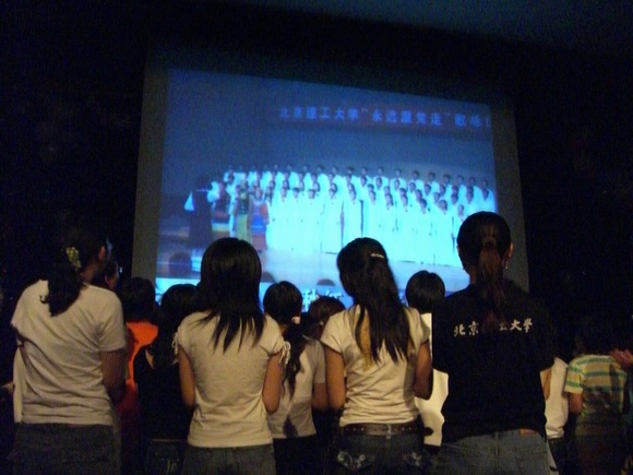 从四年前的相遇到相识,又到相知,再到不久后的离别,在节目中穿插的短片和毕业生的感言记录了同学们在四年大学生活中的点点滴滴,而由王征老师亲自拍摄制作的短片更是让毕业生们再次回首了那段艰苦而又难忘的军训时光。歌会在一首周华健的《朋友》声中落下了帷幕,全体02级本科生上台演唱,并合影留念。晚会结束后,同学们纷纷和自己的同窗好友互相拥抱,有些即将离校的女同学更是泣不成声……