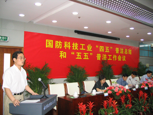 大会由国防科工委政策法规司司长张嘉浩主持,国防科工委普法领导小组成员,各省、自治区科工委(办)、各军工集团公司、中国工程物理研究院、委属院校、委属事业单位负责法制工作的负责人以及“四五”普法先进单位、先进集体和先进个人总计130多人参加了会议。