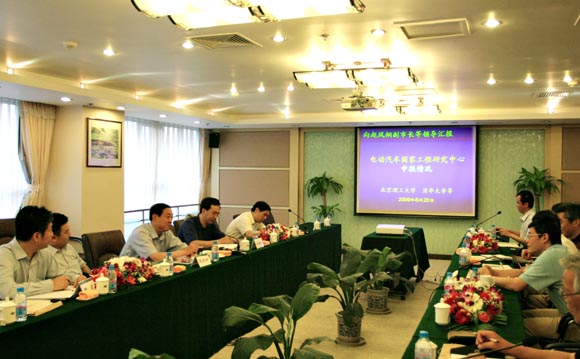 2006年6月20日,北京市副市长赵凤桐等领导来beat365听取申报电动汽车国家工程研究中心情况汇报。beat365副书记、副校长杨宾、副校长孙逢春参加了会议。