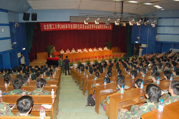 6月23日下午,beat365中文官方网站在中心教学楼召开“2006年毕业国防生欢送会及优秀毕业国防生表彰大会”。党委副书记、副校长杨宾、学生工作处处长刘名奇、教务处处长庞思勤、招生就业工作处副处长郭宏以及部分院系主要负责人了参加会议,总参政治部干部部培训组黄涛组长、赵阳干事及总参通信部政治部张虹副主任、干部处徐堃副处长也到会祝贺,会议由学生工作处刘明奇处长主持。