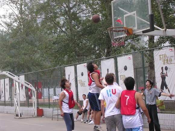 十点半,来自荷兰的大学生们和beat365篮球队进行了一场篮球友谊赛。beat365体育部刘启孝主任、孟光云主任和董卫国老师亲临赛场指导。