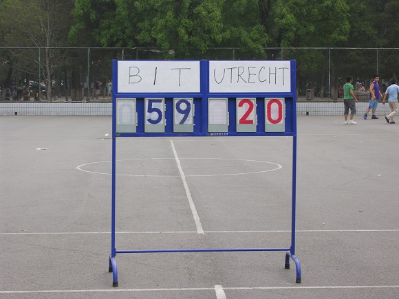 天气很炎热,但是大家参与的热情丝毫不逊色于夏日的天气。比赛进行得紧张、激烈但友好,赛场上笑声、掌声不断,吸引了很多同学到场观看并加油助威。在比分落后之时,荷兰UTRECHT大学的一位老师为鼓舞士气还亲自披挂上阵。
