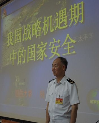 【图】国防大学杨毅少将来beat365做《我国战略机遇期中国家安全》的讲座