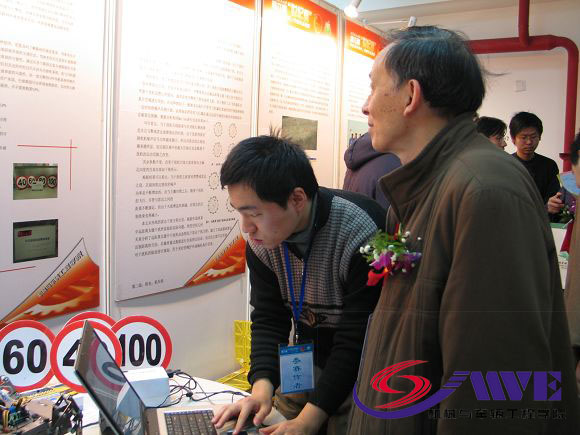 答辩会上,参赛选手站在自己的展板旁边,结合展板前的实物向参观的评审专家和同学讲解自己作品的特点和创新点。通过这种方式,参赛作者可以更清晰地介绍自己的作品,也使参赛作者与评审专家和参观的同学能有更充分的沟通和交流。