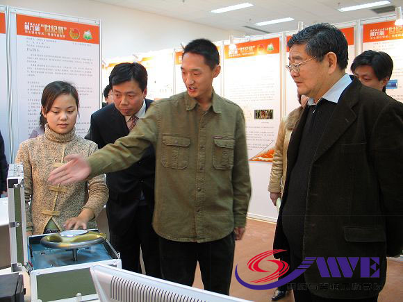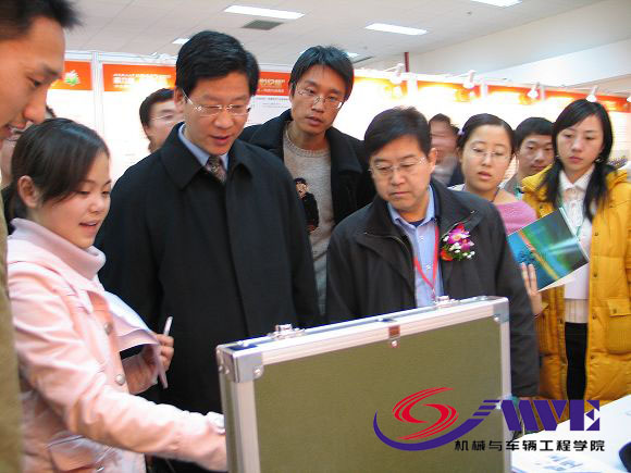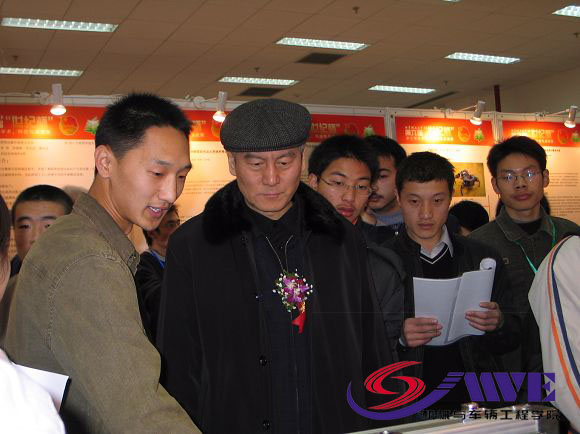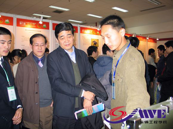 校党委书记焦文俊来到我院展厅,饶有兴趣地参观我院同学的课外科技作品