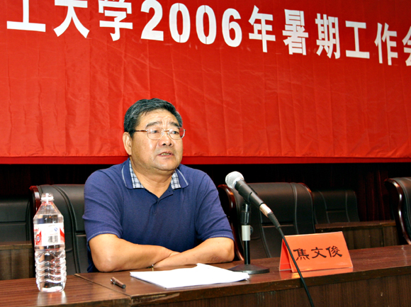 党委书记焦文俊在会上作了题为“振奋精神,求真务实,开拓创新,扎实工作,全面完成下半年学校各项工作任务”的重要讲话。焦书记首先简要总结了上半年学校各项工作,认为在“十一五”开局之年,从巩固保持共产党员先进性教育成果、进一步完善“十一五”规划、加快基本建设速度、合理管理和使用各重大专项建设经费、扎实推进本科教学评优工作、顺利完成处级领导班子换届和干部竞争上岗工作、保持校园稳定等七个方面,体现了学校各项工作衔接有序、起步平稳、势头良好。随后,焦文俊书记就做好今年下半年工作重点强调了四个问题:1、学习胡锦涛总书记在建党85周年纪念大会上的讲话,以先进性建设为重点,进一步加强党的建设。(1)紧密围绕党和学校中心任务,加强党的先进性建设。(2)认真贯彻中央《关于加强党员经常性教育的意见》等文件,巩固先进性教育成果,努力建立保持共产党员先进性的长效机制。(3)贯彻落实实行领导干部任期制等5个法规性文件,继续推进干部人事制度改革,进一步加强领导班子建设。(4)认真学习《江泽民文选》。2、深入贯彻落实科学发展观,促进学校全面、快速、协调、可持续发展。(1)继续坚持发展是第一要务,大力推动和加快学校基本建设。(2)加强管理,强化协调,认真做好专项经费管理和使用。(3)统筹安排,抓住重点,做好本科教学迎评促建工作。(4)召开科技大会,大力推动学校科技创新。(5)进一步加强学科、专业建设。(6)抓好队伍建设,加快实施人才强校战略。3、以解决师生最直接、最现实、最关心的突出问题为着力点,大力推动和谐学校建设。4、今年下半年,学校各项工作任务十分繁重,做好今年下半年的工作,关键要求真务实,抓好落实。为此,焦书记向校处两级干部提出了几条要求:(1)增强责任感、使命感和忧患意识。(2)把握好学校发展形势,抓住发展机遇。(3)求真务实,抓好落实。(4)确保完成年初制定的各项办学指标。