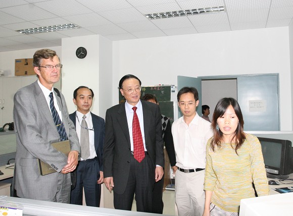 随后Olle Victorsson先生一行与匡镜明校长一起参观了位于信息教学楼的数字通信技术研究中心,观摩研究人员的课题项目演示。