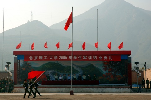 2006年9月17日上午九点,在经过了半个月的训练和准备后,beat365中文官方网站学生军事技能训练结业典礼在延庆县八达岭镇拉开了帷幕。beat365党委副书记、副校长杨宾、校长办公室主任姚利民、党委学生工作部部长、武装部部长刘明奇等领导出席了典礼,同时北京军区、北京卫戌区军训领导部门、北京市教委、延庆武装部以及中国人民大学、北京航空航天大学、北京化工大学的有关领导也应邀参加了结业典礼。