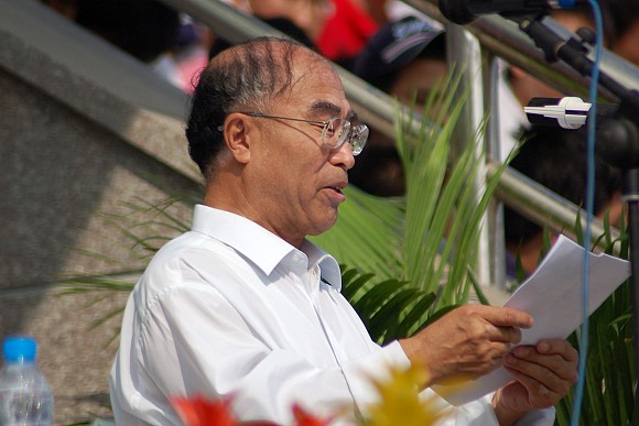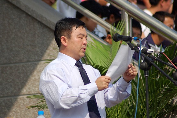 开学典礼暨军训阅兵式由校办主任姚利民和军训总指挥、学生工作处处长刘明奇主持。