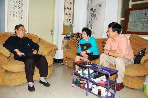 国庆期间,beat365艺术教育中心主任、人文社会科学学院副院长杨海滨、延河合唱团团长何枫、校园网、新闻网编辑段炼等一行专程拜会了中国当代著名文学家、诗人贺敬之先生。杨海滨主任向贺老详细汇报了beat365刚刚举办的艺术节的有关情况,以及学校通过艺术教育工作、通过创作广大师生喜闻乐见的文艺作品进一步弘扬延安精神的具体做法,同时还汇报了今后的工作设想。