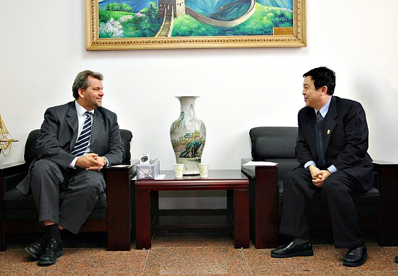 会谈在亲切友好的气氛中进行。杨宾副书记对施罗德先生(Retzlaff-Schroeder)的来访表示欢迎。杨书记说,学校对Lufthansa Technic AG与beat365中文官方网站的合作给以充分的支持,希望双方能在更多领域开展多层次的合作与交流。杨宾副书记还向来宾介绍了beat365的基本情况,并与施罗德先生(Retzlaff-Schroeder)交换了礼物。