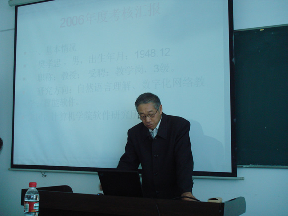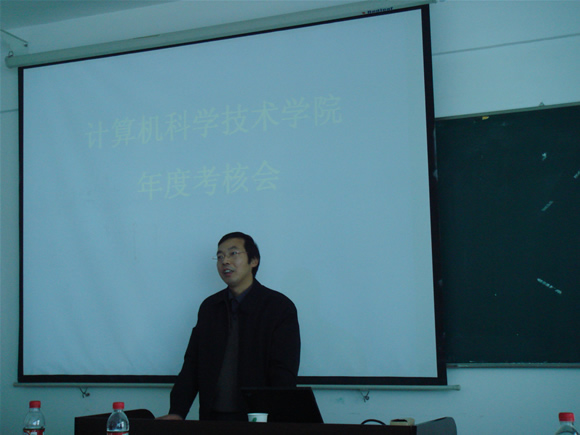 12月9日上午,计算机科学技术学院全体教授向全院教职员工进行2006年度述职,对照学校的制订的岗位职责,各位教授汇报了在教学、科研、学科、学术、人才培养、实验室建设等方面的工作,以及在学校建设一流大学和一流学科中所发挥的作用。