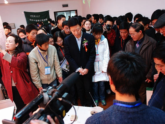 焦文俊书记等领导在参观完我院参赛作品后,对我院作品的水平给予了充分的肯定,并亲切地与我院参赛作品作者合影留念,并鼓励作者们要继续努力,让参赛作品不断完善,不断提高。相信在学校各级领导的关心和支持下,我院的学生课外科技创新活动会越办越好,迈上一个新的台阶!