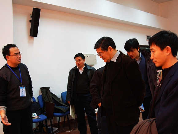 研究生院吕昕常务副院长在听取我院副书记、副院长栗苹教授对组织我院学生参加本次“世纪杯”活动的有关工作汇报。