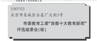 北京市东城区台基厂大街3号(注明市委教育工委“首都十大教育新闻”评选组委会(收)邮政编码:100743)