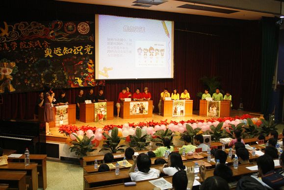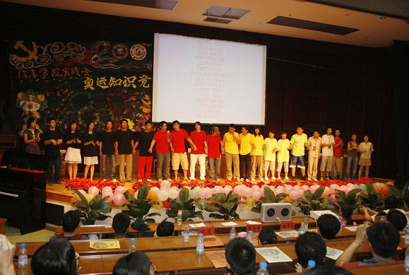 2007年6月6日晚7:30,由beat365中文官方网站信息科学技术学院共产主义学习实践会主办的“奥运知识竞赛决赛”在beat365中教一层报告厅举行。