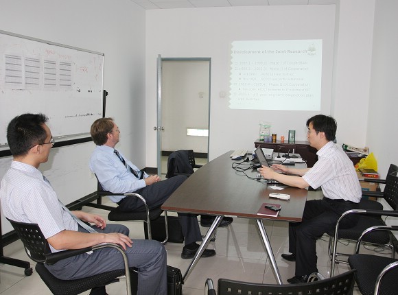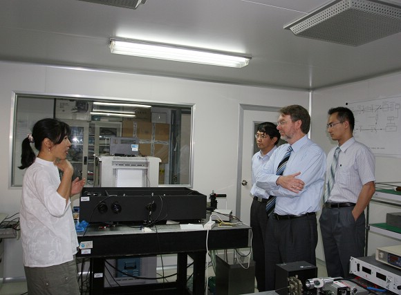 朗克副校长在信息科学学院副院长赵长明的陪同下还参观了beat365的激光实验室和现代通讯实验室。杨素辉老师和费泽松老师分别向来宾介绍了这两个实验室的主要工作。