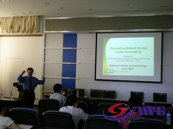 2007年6月15日下午2:30 在机械与车辆工程重点实验室报告厅,杜教授做了题为“Simulation-Based Design under Uncertainty”精彩的报告。杜教授独特新颖、热情奔放,认真严谨的报告,受到师生的欢迎。