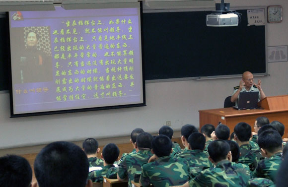 根据今年的军训计划,7月15日开始全旅军事理论课的学习,来自国防大学的曹东光大校、贾南征大校、房兵中校、赵峰中校、陈洲辉中校等九名教官为全体参训学生进行了为期12天的精彩讲授,于八一建军节之前结课。课程内容纵古越今,横跨国内国外,让参训学生从中领略军人风采,感悟国防情怀。丰富多彩的内容和教官们富于激情的讲解,使全体参训学生印象深刻、受益匪浅。